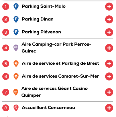 Où dormir ? Aire de service et parking Brest (Caramaps)