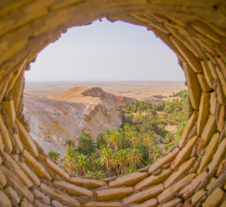 À Tozeur, admirez l’architecture en briques ocre et partez explorer les oasis de montagne : Chebika, Tamerza, Midès, véritables havres de fraîcheur nichés aux portes du désert.